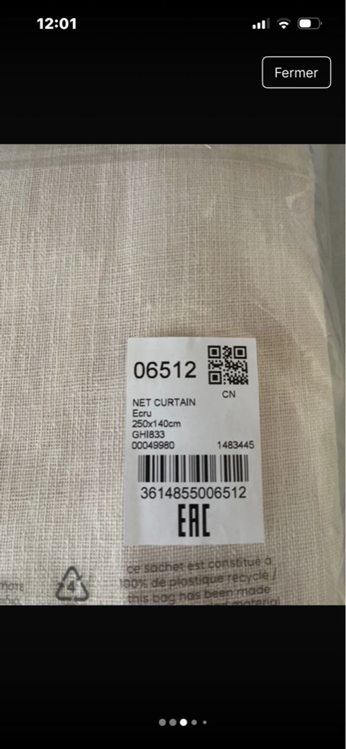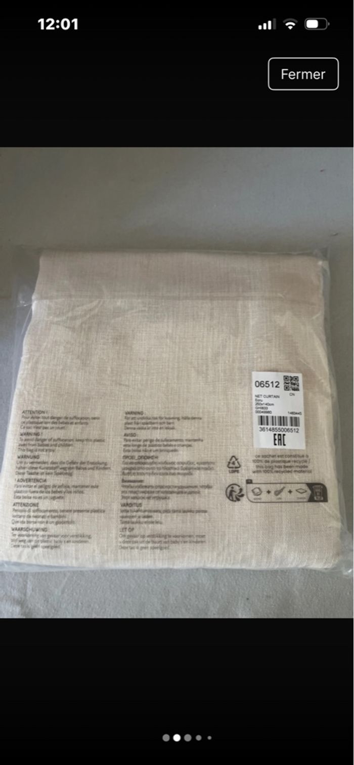 Voilage à galon fronceur, Nyong 250×140cm couleur écru Neuf