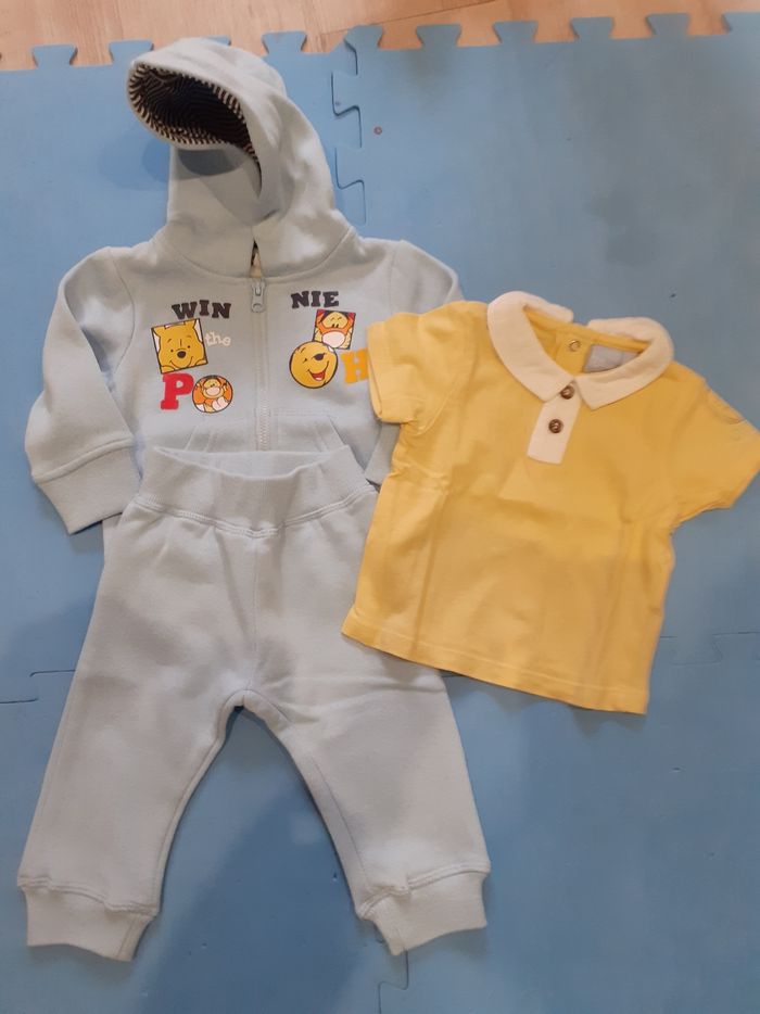 Vends survêtement Disney Winnie 3mois. Sweat à capuche avec fermeture éclair, jogging et tee-shirt manches courtes (boutons pression dans le dos)
