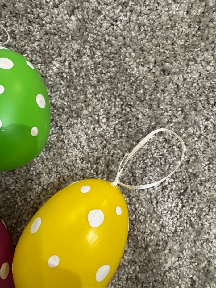 Lot d’œufs de Pâques à suspendre. Un des œuf a été rafistolé ( voir photo) Les œufs sont léger. #oeufdepaques #decopaques #pâques #missmadere91_maison