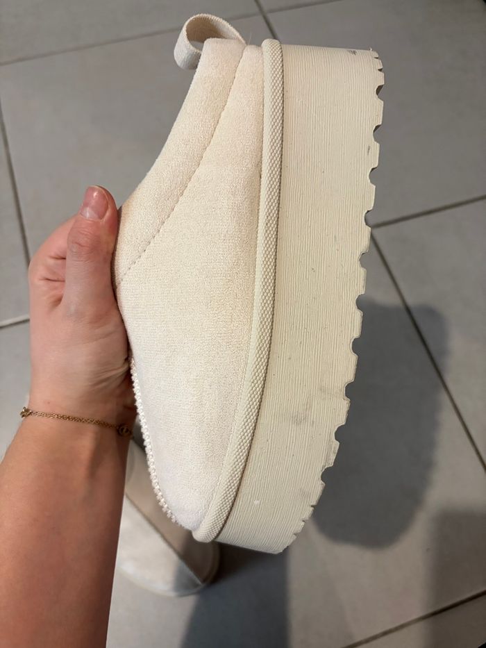 Taille 37 Bon état (petites traces noires voir photos) Beige clair À plateforme