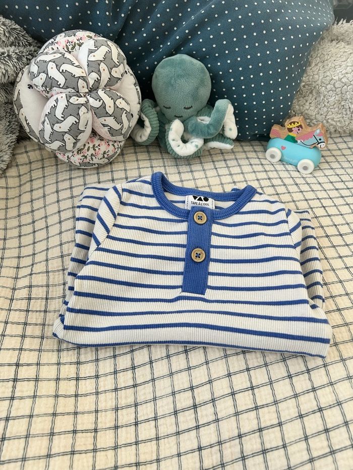 Combinaison à rayures blanches et bleues Excellent état Taille 1 mois
