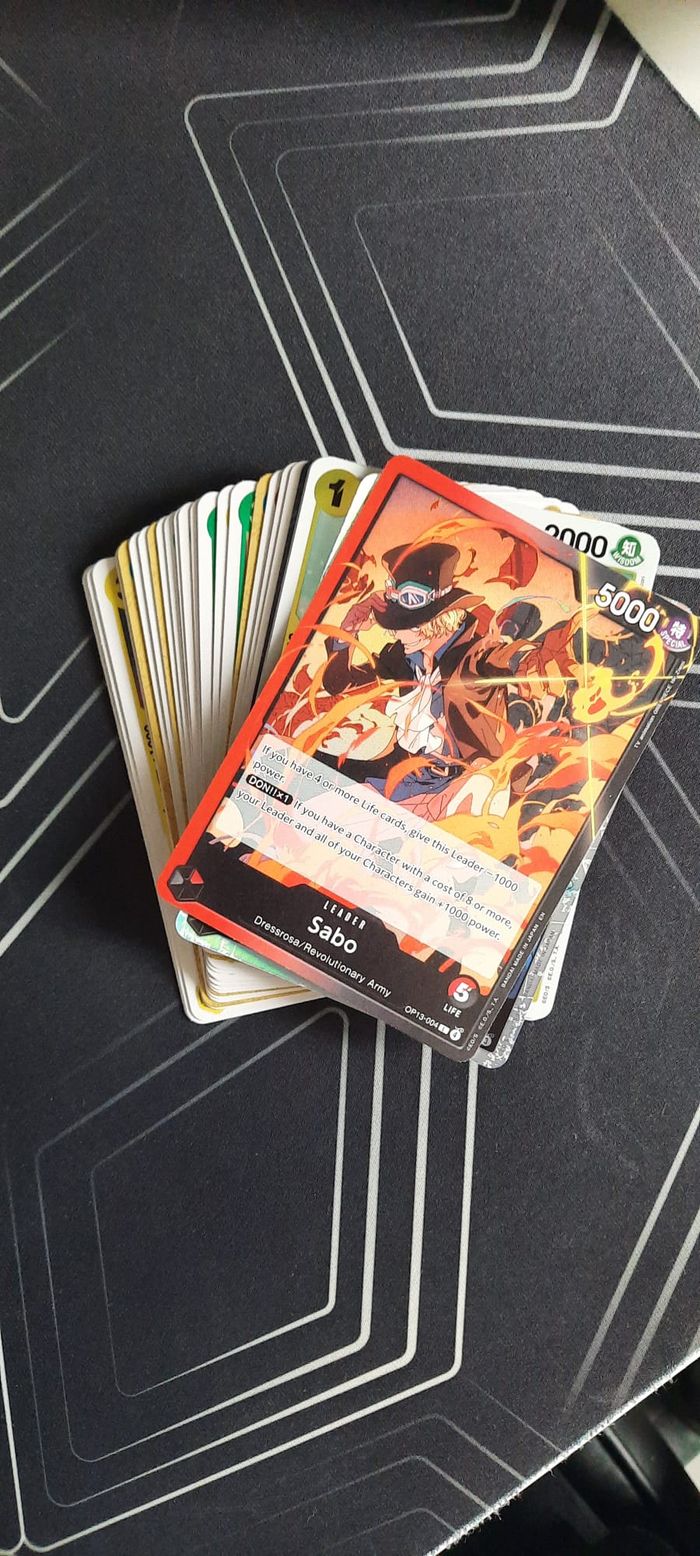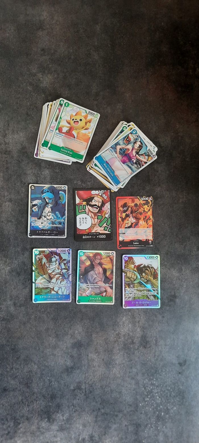 100 cartes neuf (36 cartes op13 - 44 cartes op14 - 1 carte eb02-11 cartes eb04 - 5 cartes op10 - 6 cartes op01 ) leader sabo op13-004 / leader doflamingo, crocodile, moria op14 sr roger op13-064 sr newgate op13-042 sr shanks op13-028 SR Law eb02-045 don roger op13 r,uc,c