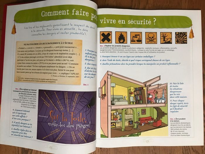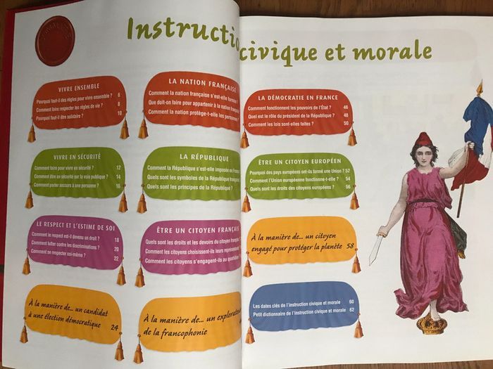 Très bon état 63,pages Format 23,5 x 28,5 Livre de l’élève CE2 - CM1 - CM2 Un dossier pour traiter de manière approfondie tous les thèmes du programme d’instruction civique et morale : - Une approche centrée sur l’analyse de documents variés (photographies, textes, bandes dessinées, affiches...) qui favorise le débat oral. - Une structure dynamique : le titre de chaque double page est rédigé sous forme de question à laquelle les différents documents aident à répondre. - Des doubles pages transversales « À la manière de… », en lien avec le français et la géographie, permettent aux enfants de découvrir de manière active certains thèmes du programme. Le dossier de l’élève est divisé en 8 chapitres : - Vivre ensemble - Vivre en sécurité - Le respect et l’estime de soi - La Nation française - La République française - Être un citoyen français - La démocratie en France - Être un citoyen européen Chaque chapitre est découpé en trois doubles pages qui traitent chacune l’un des aspects du thème. Chaque double page s’appuie sur une question et propose des documents variés pour y répondre. Le questionnement aide les enfants à structurer leur réflexion et à débattre sur chaque document. À la fin du chapitre, un « Carnet de route » synthétise les principales idées et notions à retenir sur le thème. Les mots difficiles sont expliqués dans un lexique en fin d’ouvrage. Proposé à 6,50 € - négociable #Cycle3domi8084 #CE2domi8084 #CM1domi8084 #CM2domi8084 2