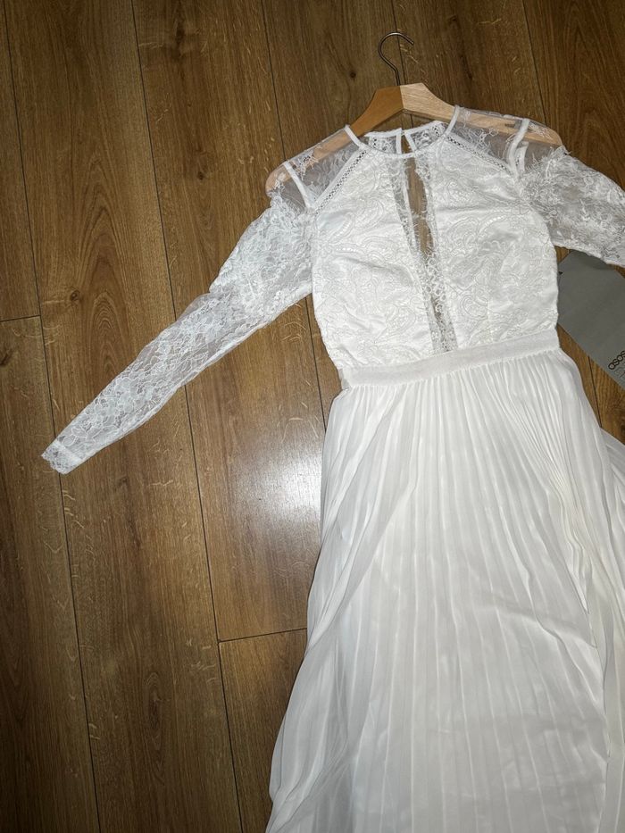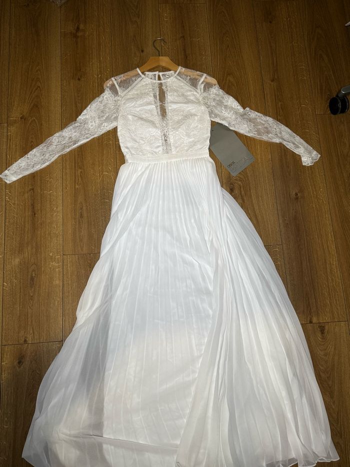 Robe blanche style bohème / mariage civil – dentelle & jupe plissée - photo numéro 1