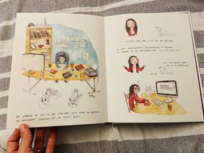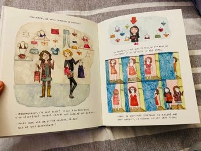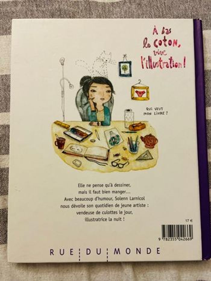 Comme neuf Payée 17 eur à cultura A bas le coton vive l’illustration Rue du monde Mi BD, mi album, cet ouvrage atypique s'apparente à un journal intime illustré. Solenn Larnicol y retrace son quotidien d'artiste, qui tente de faire cohabiter deux univers inconciliables : d'un côté, son plaisir infini de dessiner, avec les rêves qui l'accompagnent ; De l'autre, son travail alimentaire comme vendeuse de lingerie. Les techniques commerciales y sont à mille lieues de ses aspirations : compétition entre vendeurs, consignes du chef données par oreillette, approche agressive du client. Comment vit-on au coeur de cette « machine à vendre » quand on a la tête habitée par l'art ? Le jeune lecteur pourra se confronter à ce questionnement, abordé avec humour et sensibilité. La découverte émouvante d'un itinéraire bien contemporain : comment faire coller ses rêves avec la réalité ? ⚠️ ‼️‼️ ATTENTION J'ENVOIE A PARTIR DE 3 EUROS ! LE POINT RELAIS EST UN PEU LOIN Je peux annuler la vente si pas plus de 3 eur !!! 🚨🚨⚠️⚠️‼️‼️ Dans ma boutique des livres niveaux CP ce1 ce2 cm1 cm2 maternelle primaire bibliothèque questions réponses cherche et trouve mes p'tits docs documentaires ludique humour première lecture bd bande dessinée adolescents ado