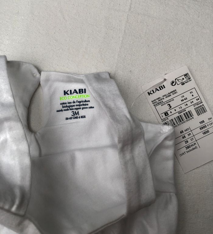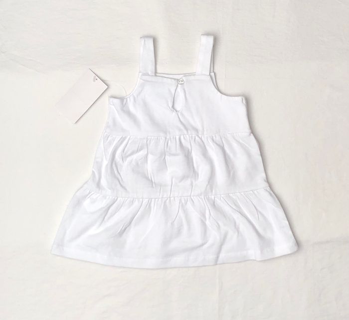 Robe été Kiabi, Taille 3 mois/ 56-62 cm, 100% coton. Robe à bretelles toute blanche, toute simple. Mignonne et confortable pour les grosses chaleurs. Ouverture, par bouton, en forme de goutte d’eau en haut du dos. Neuve avec étiquette. 🌸 Vous aimez cet article ? N’oubliez pas de visiter le reste de mon dressing en filtrant les tailles.