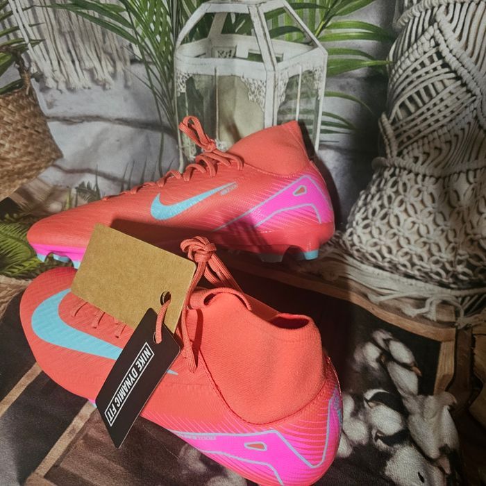 Occasion en or pour fans de foot ! Basket Nike Mercurial Vapor 15 Elite FG (orange vif/rose fluo, Swoosh bleu ciel), taille 41. JAMAIS PORTÉES, étiquette d'origine intacte – état collectionneur pur, photos 100% réelles. Prix boutique : 260€ neuf vendues 85€ seulement ici Économisez plus de 170€ sur du neuf ! Qualités elite premium : Technologie Zoom Air pour accélérations fulgurantes et studs Tri-Star pour grip exceptionnel sur terrain sec (supérieur aux crampons standards qui patinent), empeigne Flyknit Vaporposite+ hyper légère et précise pour contrôle ballon pro – confort et vitesse inégalés face aux modèles inférieurs. Idéal compétitions ou collection, coloris rare et flashy qui claque sur le terrain.Remise en main propre à Douvrin/Lens (gratuit) ou envoi soigné Colissimo (7€). Offre à 85€ pour départ rapide ! Contactez-moi, stocké au sec.
