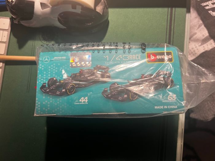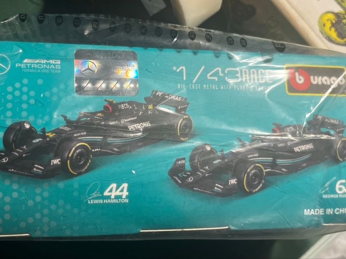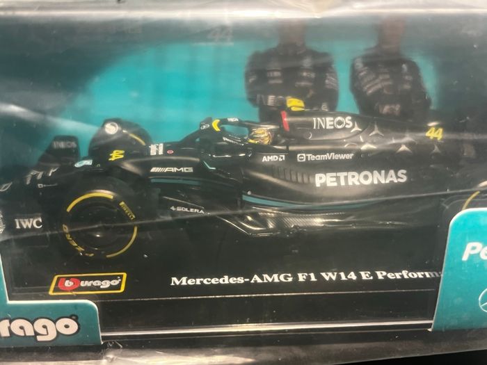 Mercedes AMG F1 W14 E Performance Lewis Hamilton #44 2023 1/43 Bburago Formule 1 avec casque. Sous carton et blister d’origine scellé. La voiture est sous case rigide.