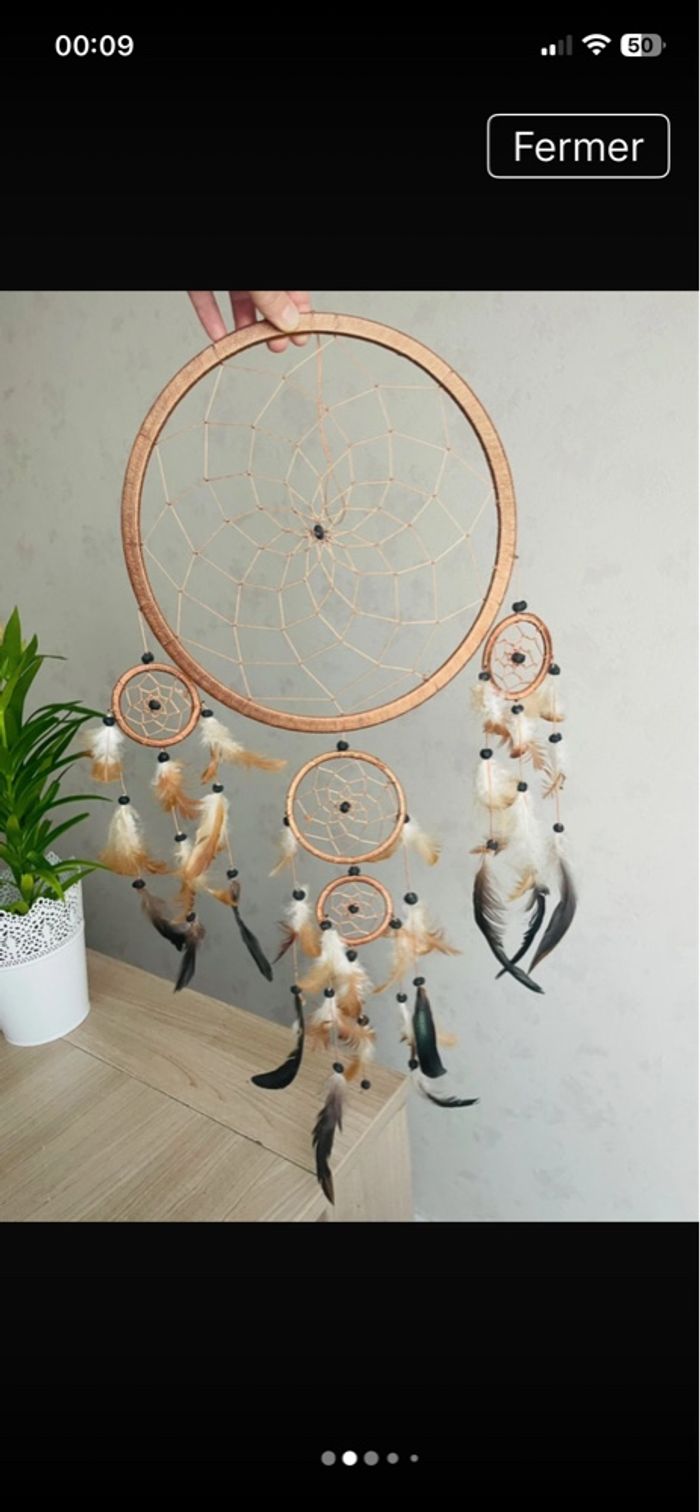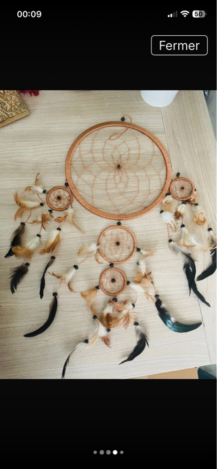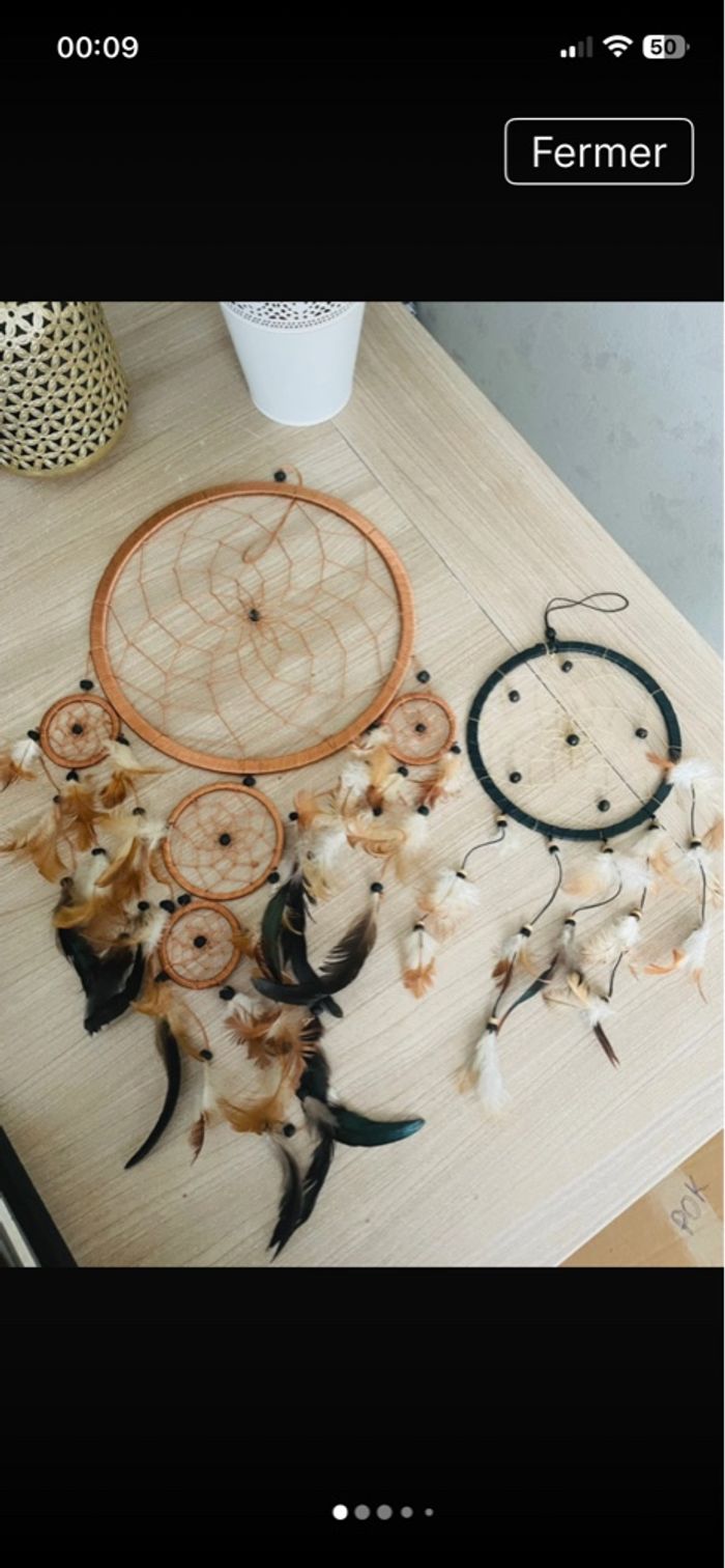 2 attrapes rêves coloris marron/beige/noir. Le grand fait 27/80 de long . Le petit fait 17/48cm de long.