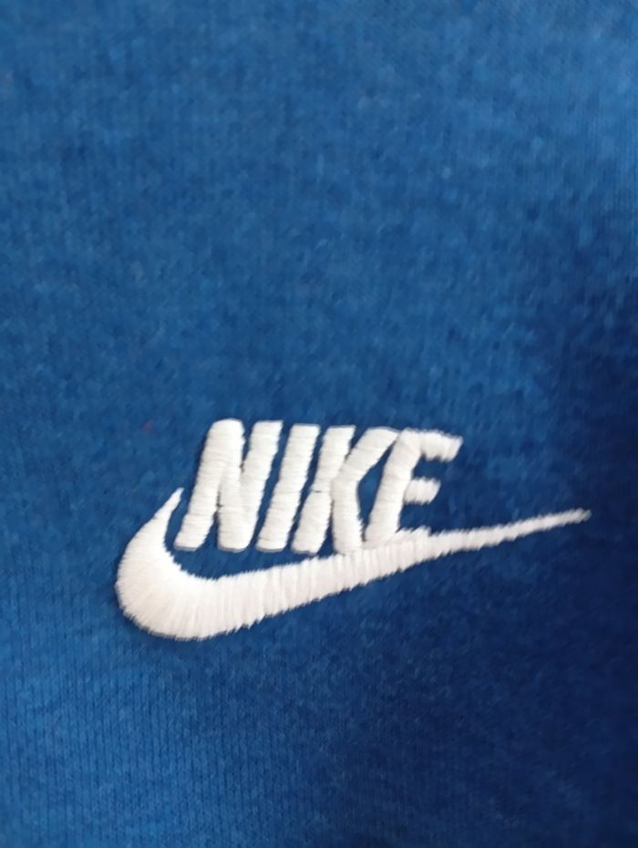 💥 À ne pas manquer ! Authentique sweat à capuche Nike Sportswear, modèle Funnel-Neck (col montant protecteur), taille S, comme neuf. Couleur bleu pétrole / bleu canard, très belle profondeur. 💎 Détails complets : Coupe : Avec poche kangourou et col cheminée confortable Matière : Intérieur en polaire brossée ultra douce (Club Fleece) Composition : Mélange coton/viscose pour toucher soyeux et souple (ne se froisse pas) Logo : Nike “Swoosh” brodé en blanc sur la poitrine Authenticité : Code produit Nike 803636-423 (visible sur l’étiquette intérieure) État : Très bon / excellent état, couleur bien conservée, aucune tache 📦 Envoi rapide et soigné