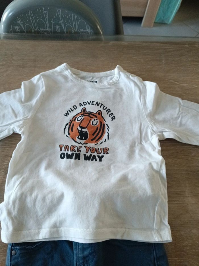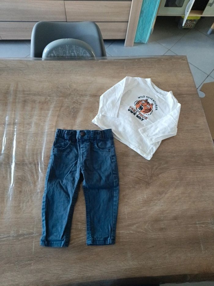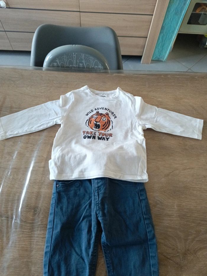 Ensemble garçon Un pantalon Kiabi taille ajustable 12 mois 74cm 10kilos Un tee shirt manches longues Kiabi 12 mois 74cm 10kilos En très bon état #laeti1059_12mois
