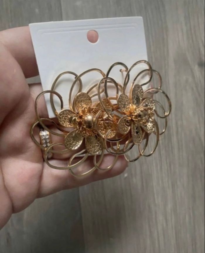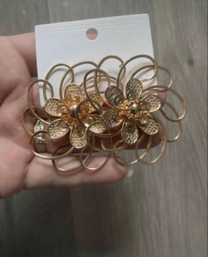 Boucles d’oreilles 🌼 NEUVES pour femme forme de fleurs couleur doré - photo numéro 4