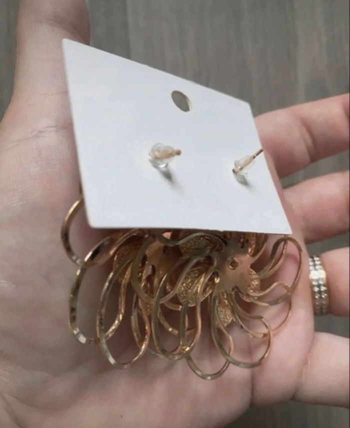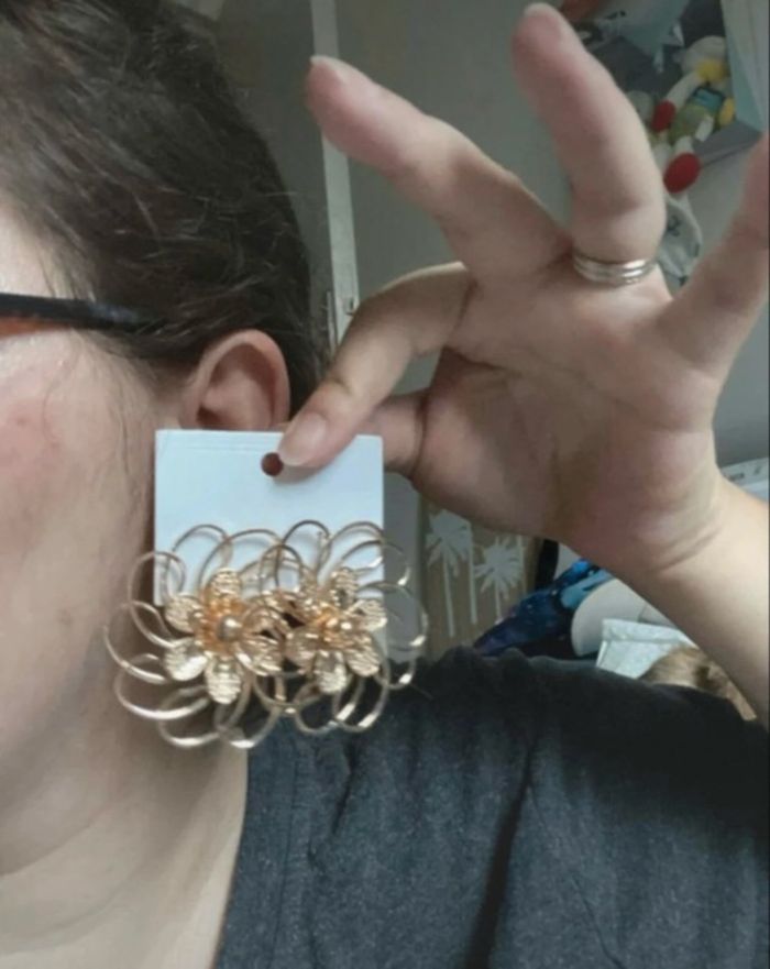 Boucles d’oreilles 🌼 NEUVES pour femme forme de fleurs couleur doré - photo numéro 7