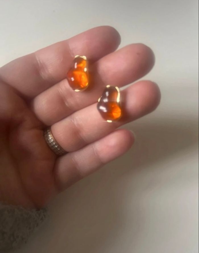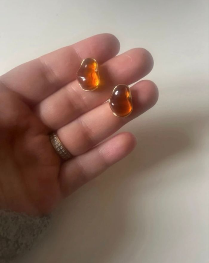 Petites boucles d’oreilles NEUVES pour femme de forme ronde couleurs ambre et doré - photo numéro 6