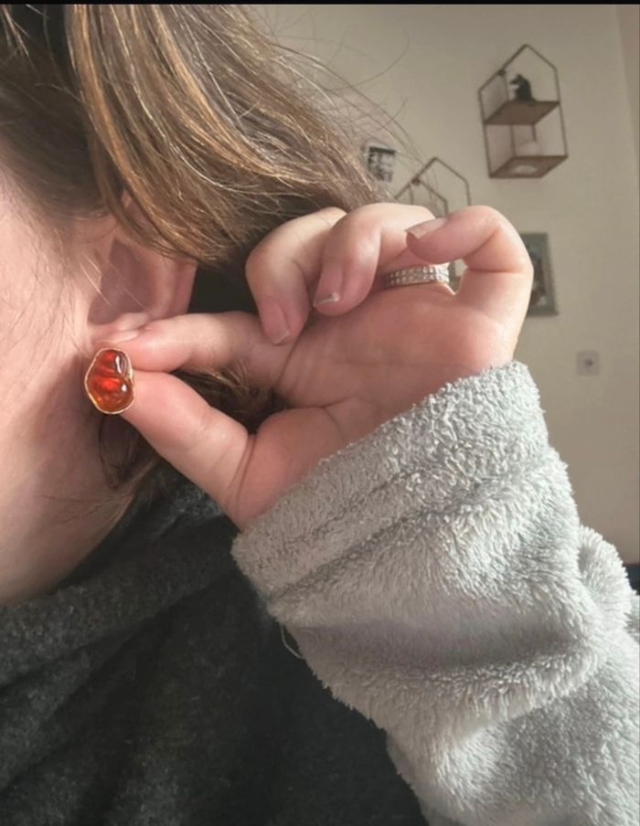 Petites boucles d’oreilles NEUVES pour femme de forme ronde couleurs ambre et doré - photo numéro 7