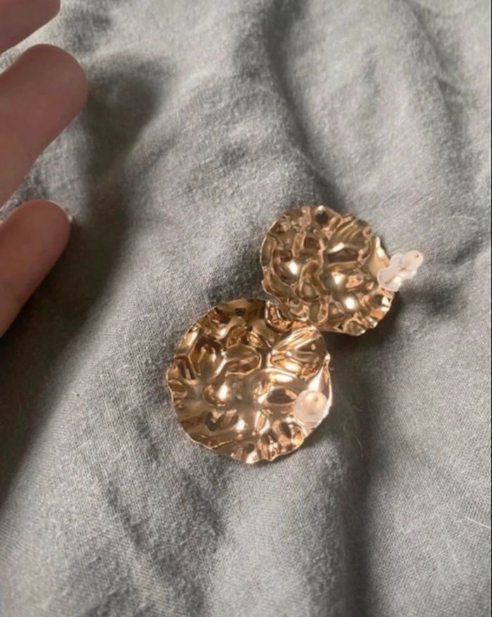 DRESSING PROPOSANT RÉDUCTIONS 💶😀 Boucles d’oreilles pour femme, de forme de ronde. Effet martelé. Pour oreilles percées. Couleur : Doré TRÈS LÉGÈRES ✨NEUVES. Jamais portées.✨ Prix : 3€55 Je dépose DANS LA MESURE DU POSSIBLE les colis 📦 le lendemain du paiement. 😉 MAIS SI CEST UN ENVOI URGENT, MERCI DE ME LE PRÉCISER ☺️. N’hésitez pas à jeter un coup d’👀 à mes évaluations. 🙂