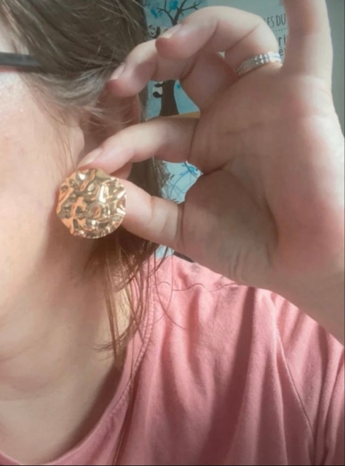 Boucles d’oreilles NEUVES pour femme de forme ronde effet martelé couleur doré - photo numéro 7