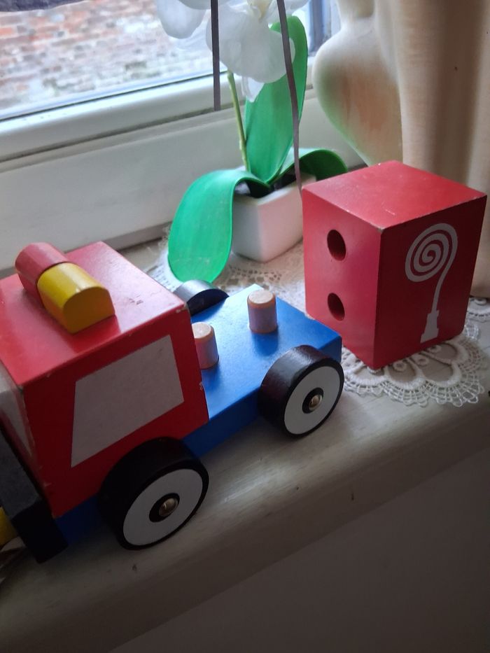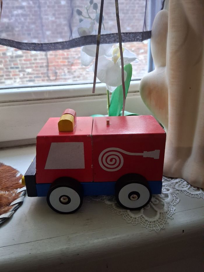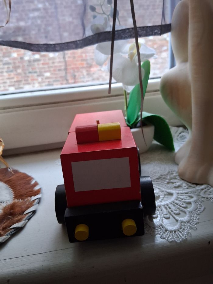 Je vends ce camion de pompier en bois. - Type de produit : Jouet en bois - Âge recommandé : De 0 à 3 ans - Matière : Bois - Fonctionnalités : Véhicule avec roues Très bon état. Un beau jouet en bois pour les tout-petits ! N'hésitez pas à me contacter pour plus d'informations.