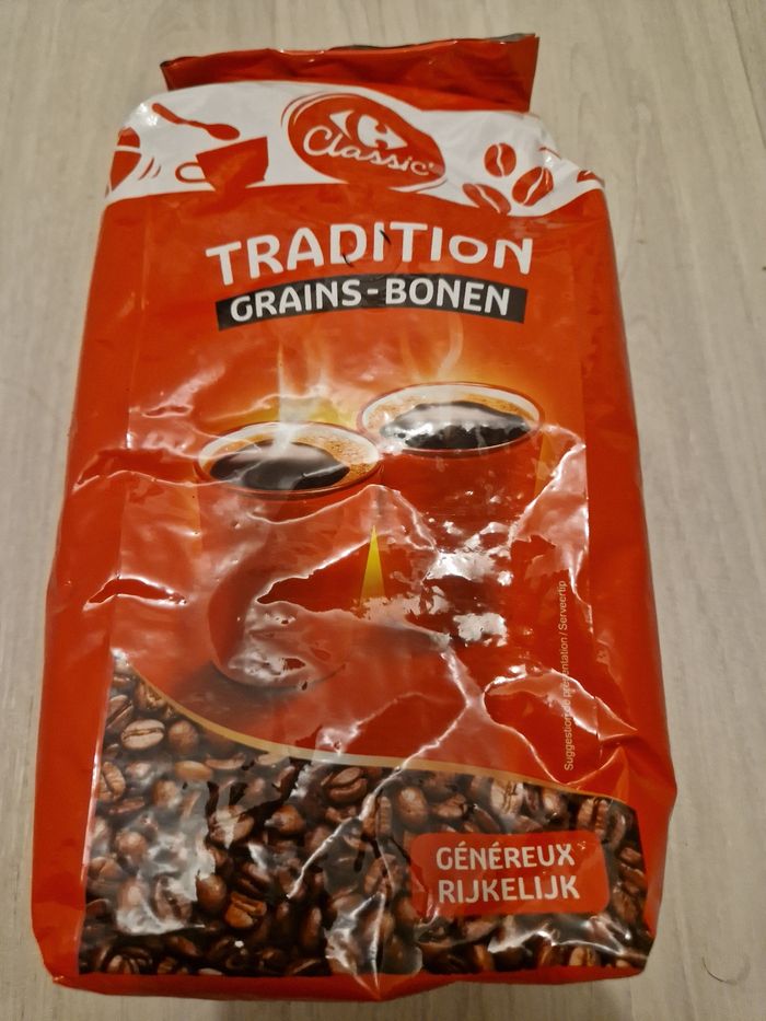 Cafe 1kg en graine marque carrefour à 9e le.kg Les 3 kg à 24e
