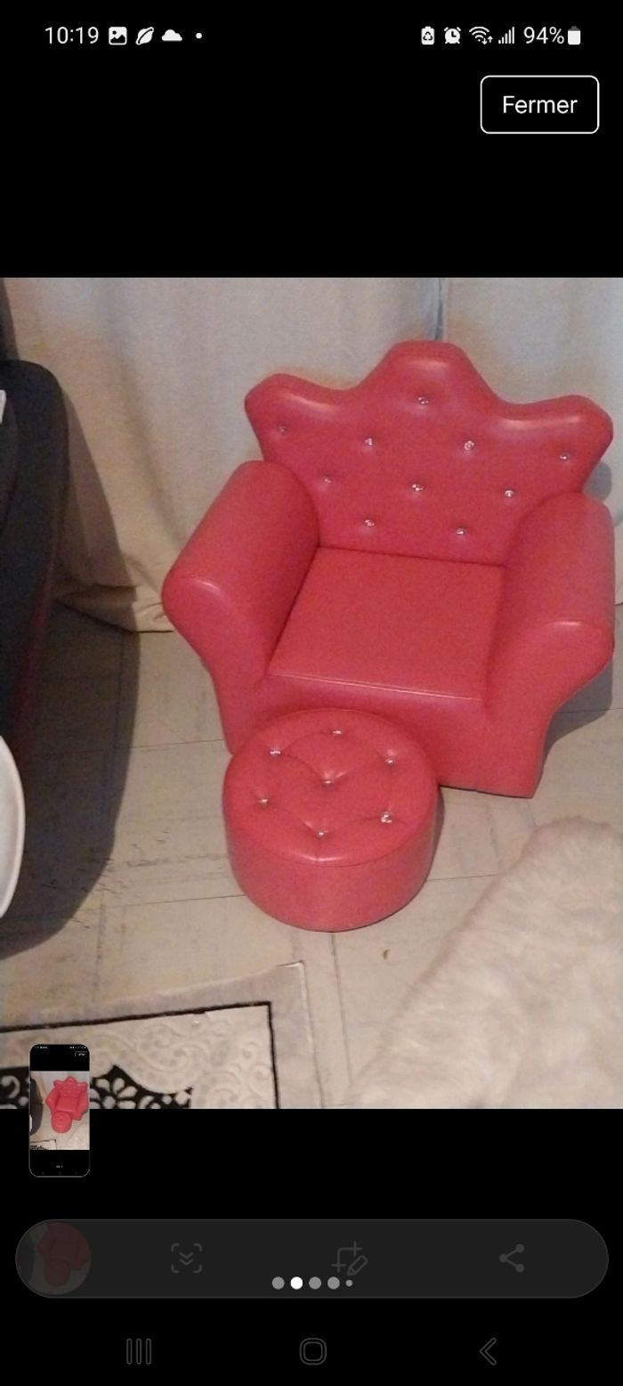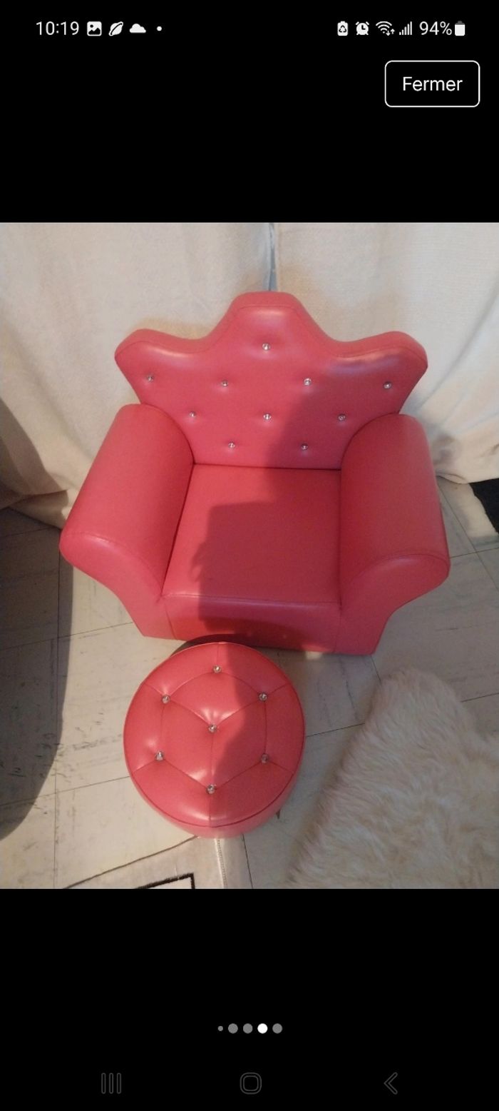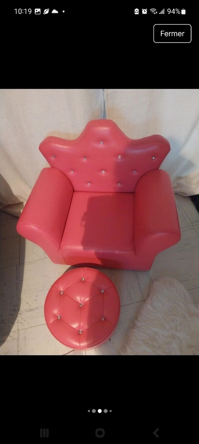 Fauteuil et pouf Princess Rose avec strass Très bon état