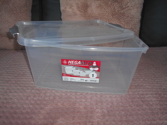 Vends cette boite de rangement avec couvercle, contenance: 13L, mesure 40 * 26,9 * 19,1 cm, en trés bon état.