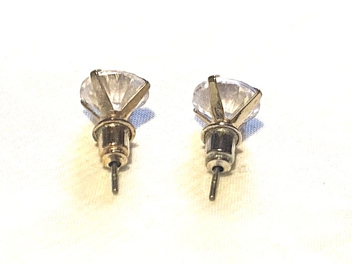 Boucles Oreilles Pierre Blanche Losange Facettes Strass Socle Bijoux Dorés Fantaisies Femmes - photo numéro 4