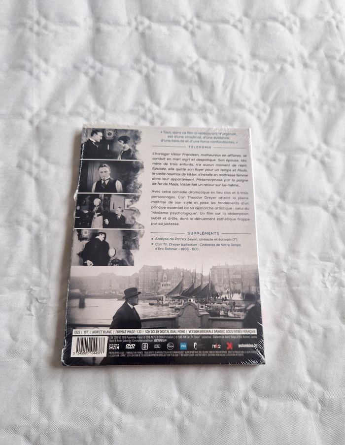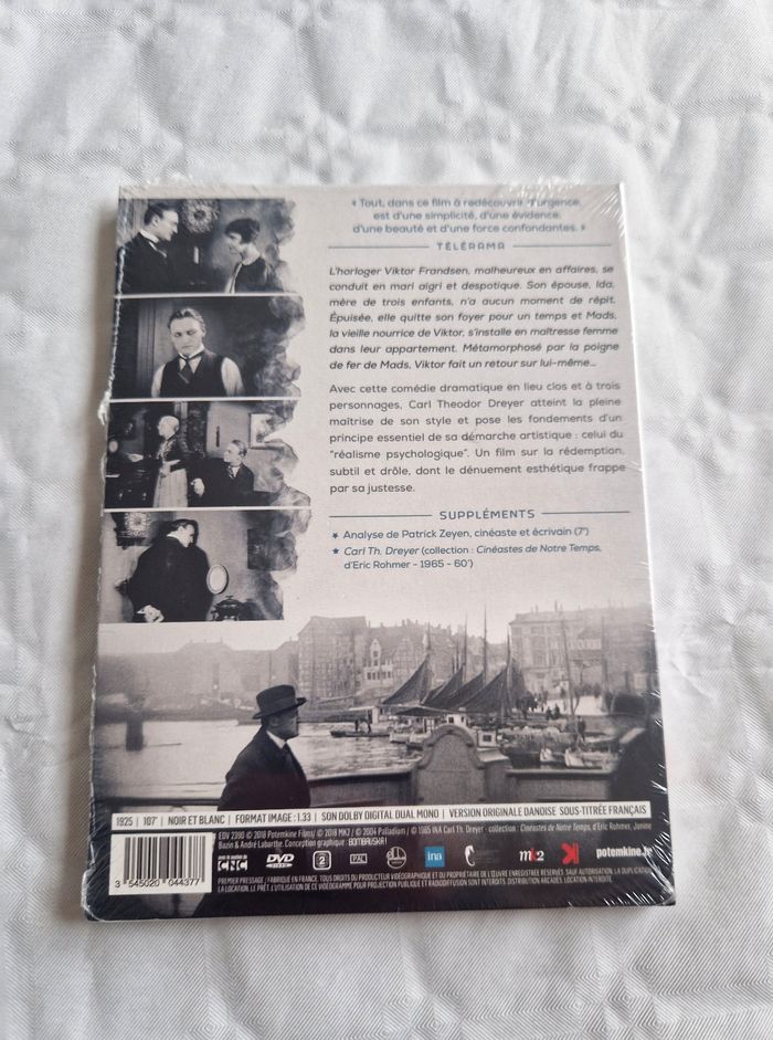 Bonjour ! Ce DVD du chef-d'œuvre de Carl Theodor Dreyer est une pièce d'exception pour les collectionneurs de cinéma classique. Un film sur la rédemption, subtil et drôle, indispensable pour toute vidéothèque exigeante. C'est un basique efficace pour votre collection. ​Fiche technique ​Style : Comédie dramatique / Cinéma muet ​Usage : DVD / Film (Version restaurée) ​État ​L'article est en très bon état. Le DVD n'a jamais été utilisé et n'a jamais été sorti de sa boîte. Le boîtier est encore sous son blister d'origine scellé, ce qui garantit une protection optimale de la jaquette et du disque. ​#lemaitredulogis #dreyer #cinema #chefdoeuvre #potemkine #film #classique #collector #dvd #artfilm #banger