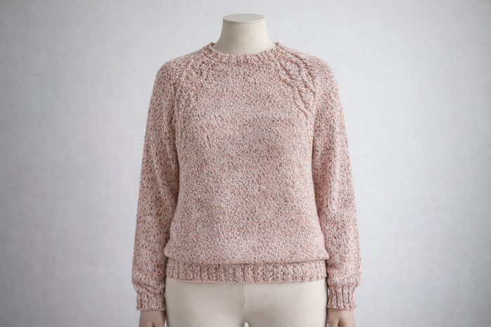 pull raglans torsadés chiné beige coton 38 tricoté main Phildar Neuf