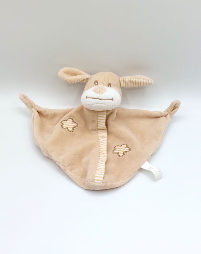 Doudou plat chien beige marron CREDIT AGRICOLE CA triangle fleurs rayures - photo numéro 1