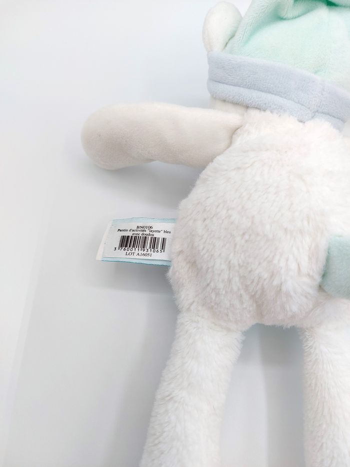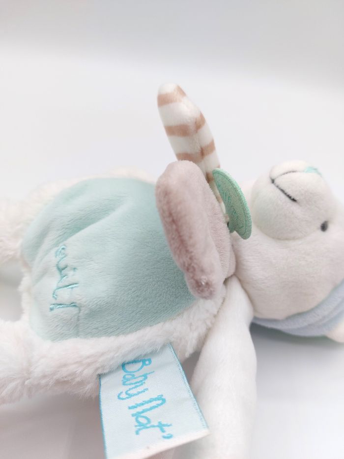 Doudou peluche ours blanc d’activités pouet BABY NAT layette BN0106 bleu vert 27 cm - photo numéro 5