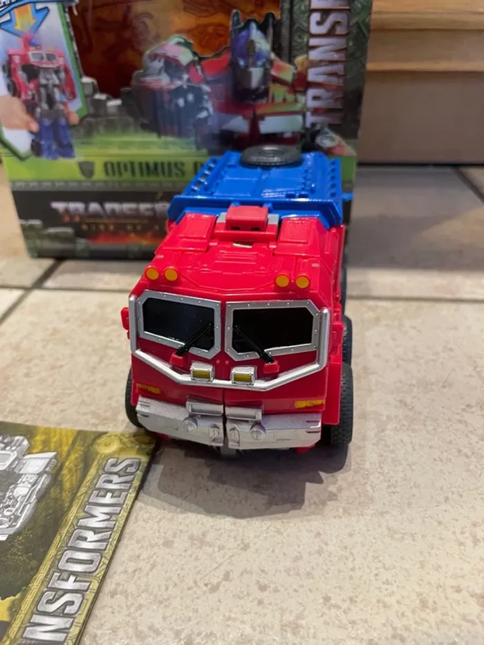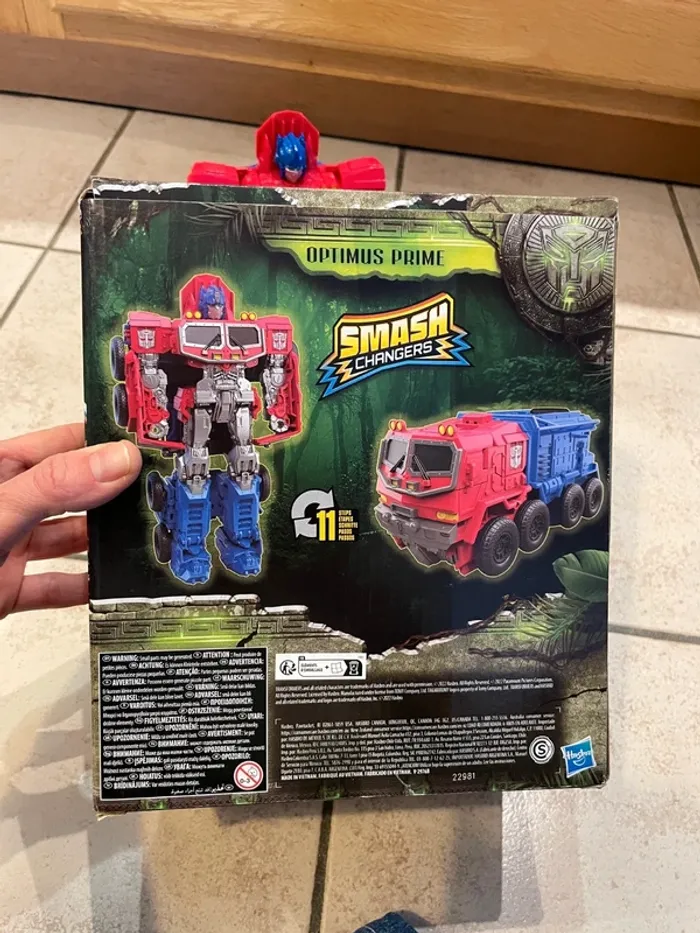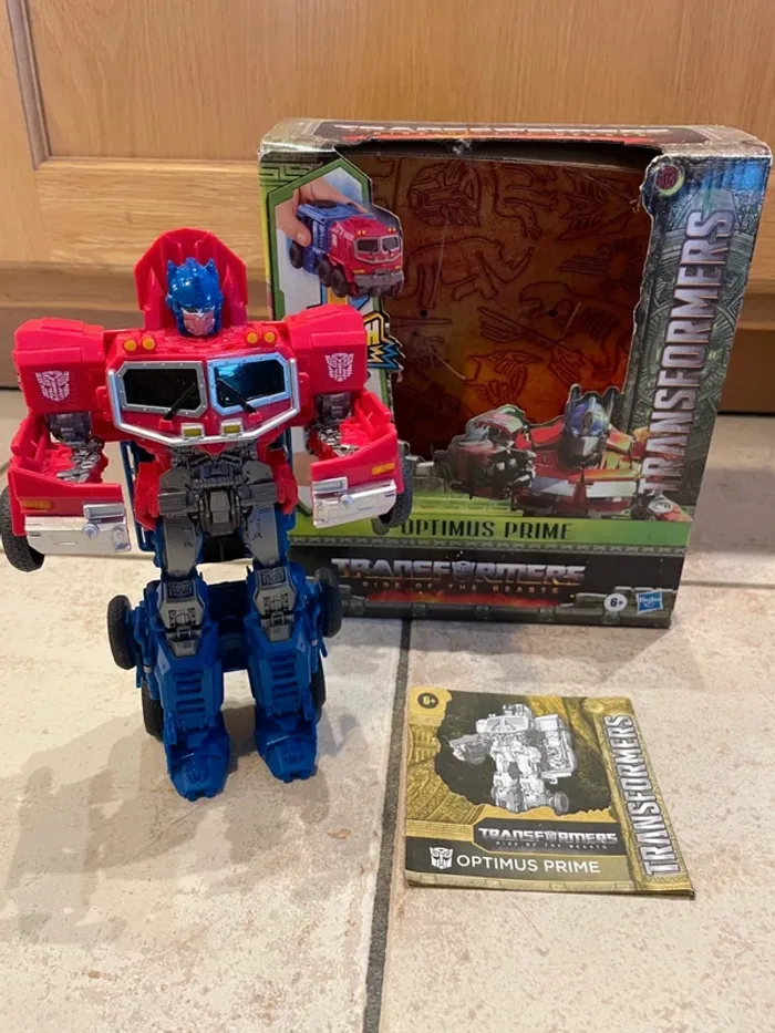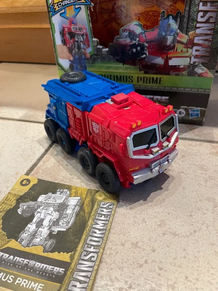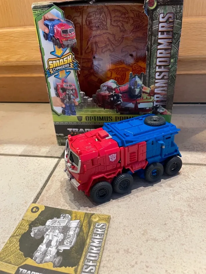 Optimus Prime Transformers Smash Changers Rise of the Beasts Très bon état, avec sa boite et sa notice (la boîte est légèrement abimée comme on peut le voir sur les photos)