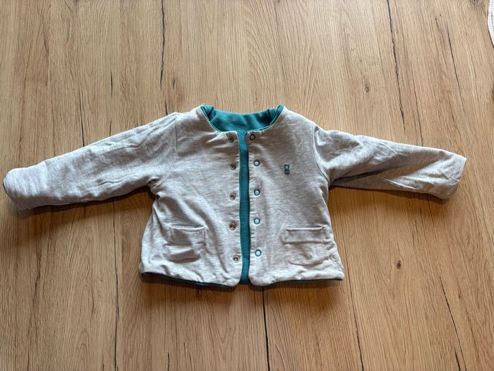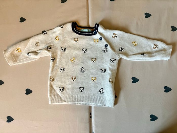 Lot vêtements 9 mois (71cm) comprend : - Pull Obaibi. Gris avec têtes panda - Grenouillère sans pied Obaibi. Boutons sur le devant - Pantalon Orchestra gris et blanc. Chaud car entièrement doublé - Veste réversible Obaibi assez épaisse. gris/bleu - Pull Kiabi beige/marron avec patchworks animaux - Pull Tape à l’œil Marinière « bouille d’amour. Boutons dans le dos - Combinaison Sergent Major. Beige avec motifs thème de la jungle - Pull Absorba Pingouin bleu marine - Pantalon Tape à l’œil moutarde - Pantalon noir Kiabi qqes bouloches - Combinaison marinière bleu/blanc baleine - Body In Extenso