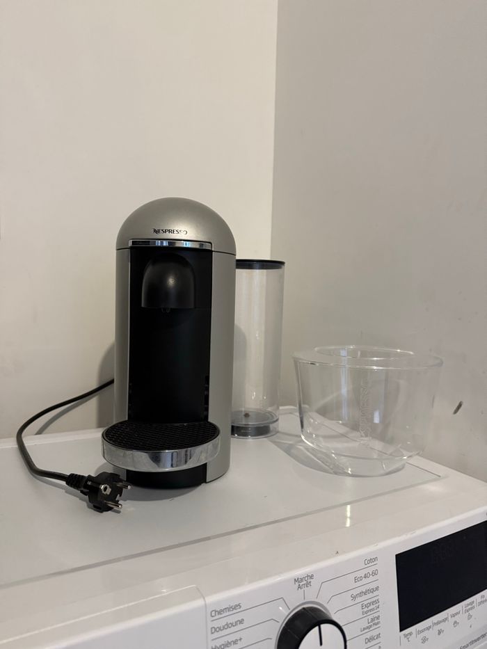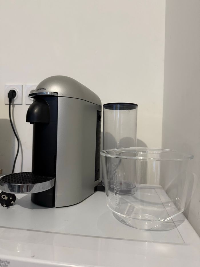 machine à café Nespresso avec rangement à dosettes très bon etat (léger défaut sur le receveur voir photo)