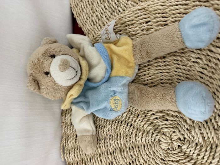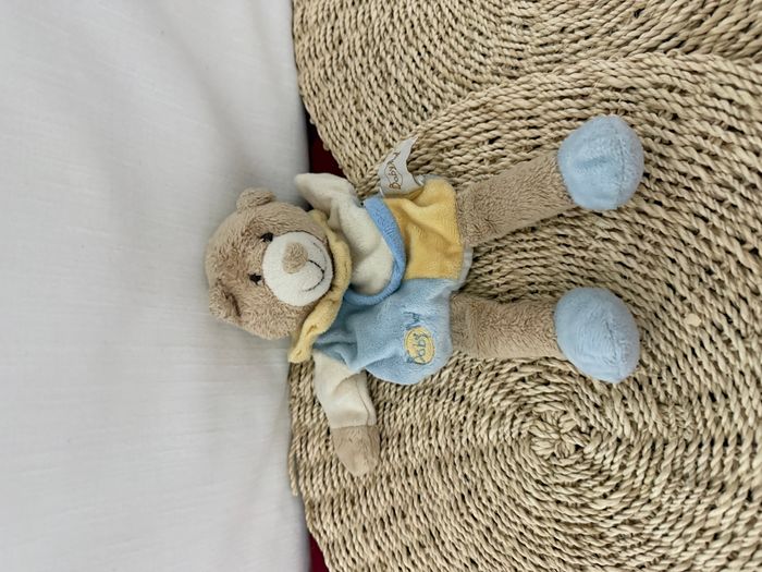 Doudou plat marionnette ours bleu beige jaune BABY NAT - photo numéro 4