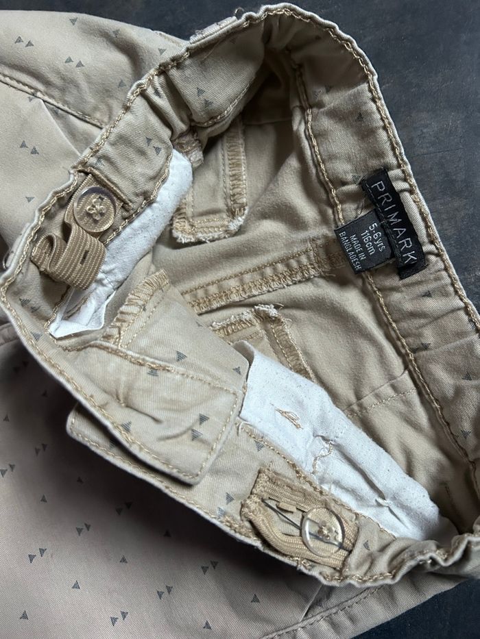 Short bermuda chino beige imprimé triangles gris Réglable à la ceinture Taille 5/6 ans 116 cm 98% coton 2% elastane Primark