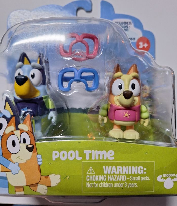Lot de 2 figurines Bluey et Bingo avec accessoires de piscine À partir de 3 ans État neuf, jamais ouvert