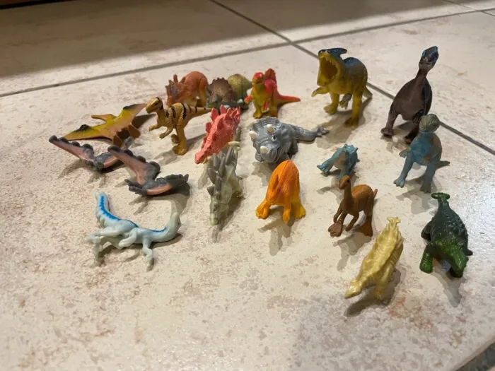 Lot de petits dinosaures en plastique