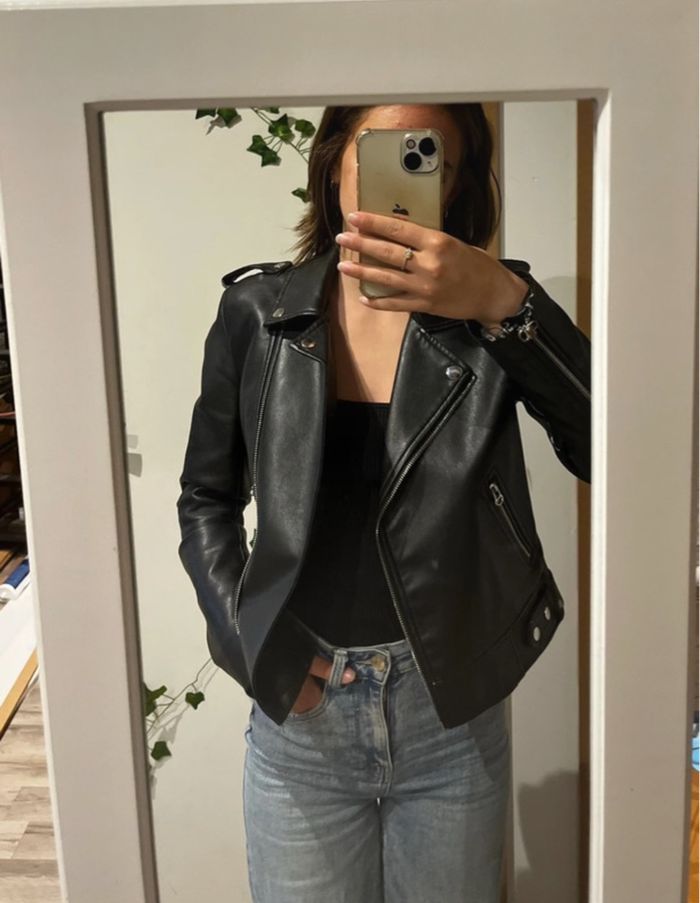 Veste en cuir un peu abîmée au niveau des manches
