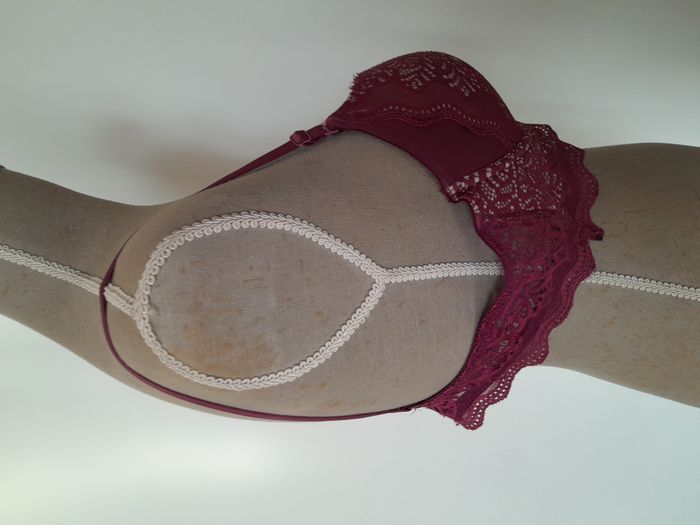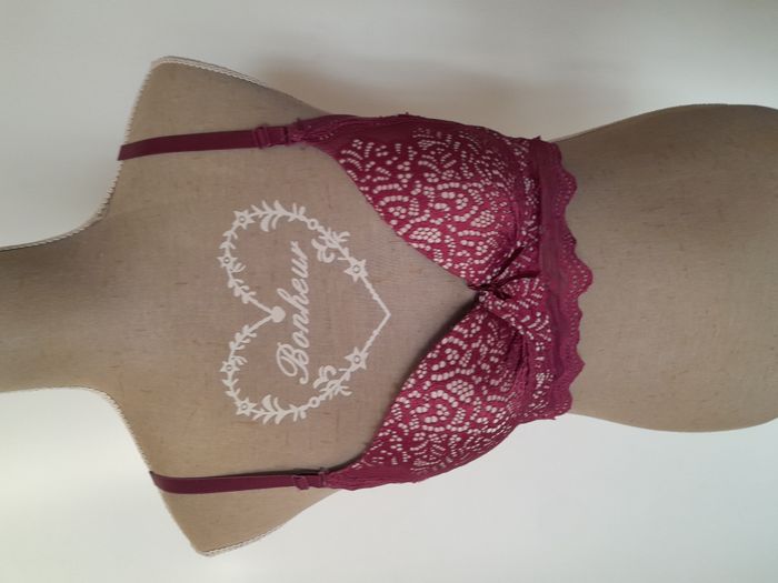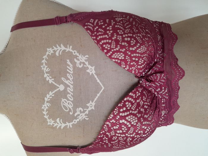 Soutien gorge, armature à coque, 3 agrafe, 3 position(taille 120 sur étiquette, mais taille réel 95) Sous poitrine : 38cm Matière : 90 % Polyamide, 10 % Elasthanne Marque : Hana