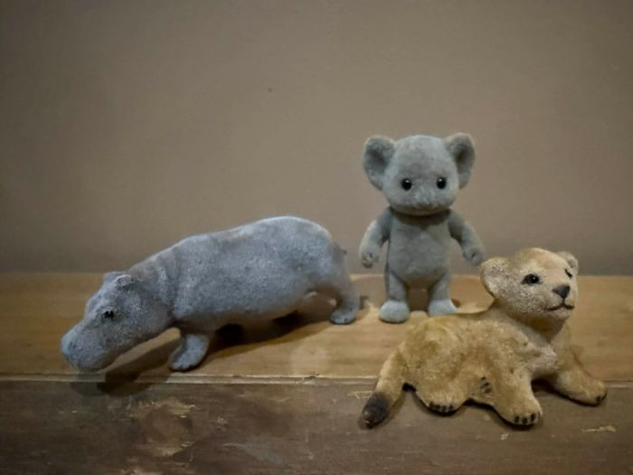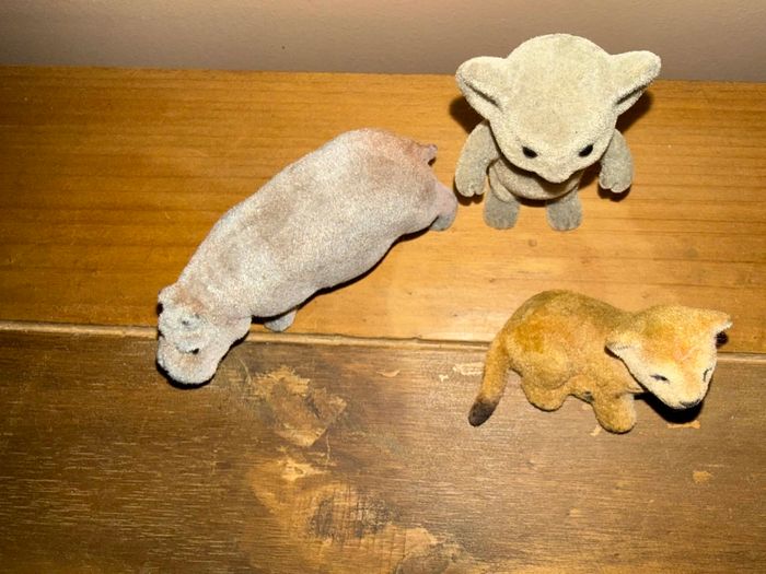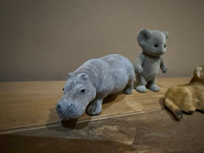 Lot de 3 animaux Plastique Floqué style Sylvanian Families Très bon état Un hippopotame, un lionceau, un koala Lot de 3 animaux Plastique Floqué style Sylvanian Families
