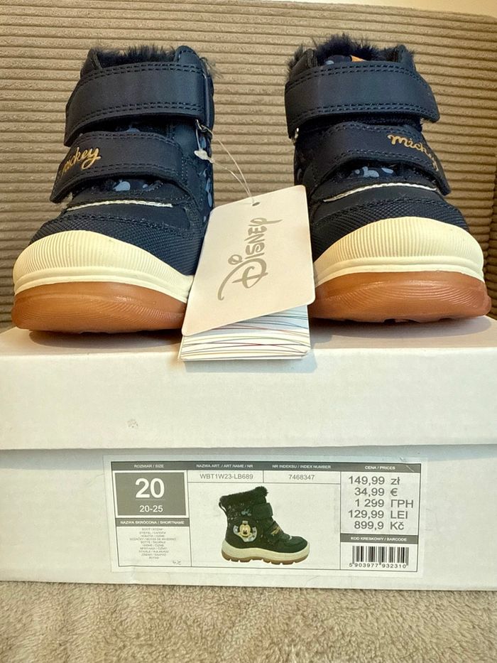 Bottes d’hiver fourrées bien chaudes, parfaites pour l’hiver ❄️ • Motif Mickey Disney • Semelles épaisses antidérapantes • Idéales pour le froid et la neige. • Fermeture scratch • Taille 20 💶 Prix d’origine : 35 €