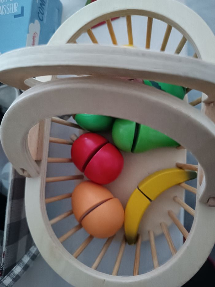 Panier fruits et autres aliments en bois à découper  - photo numéro 1