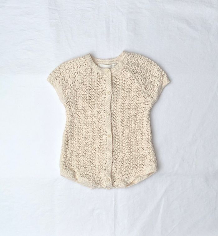 Combinaison courte/ barboteuse Zara, Taille 3-6 mois/ 68 cm, Manches courtes. Parfaite pour l’été, superbe combinaison en crochet crème. Ouverture par boutons sur tout l’avant. En excellent état, pas de signe d’utilisation. 🌸 Vous aimez cet article ? N’oubliez pas de visiter le reste de mon dressing en filtrant les tailles.