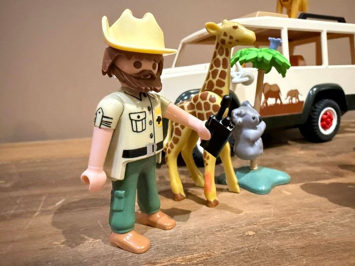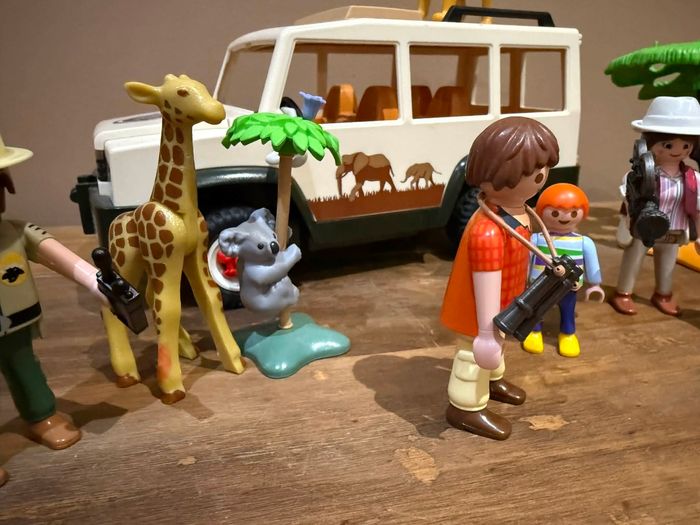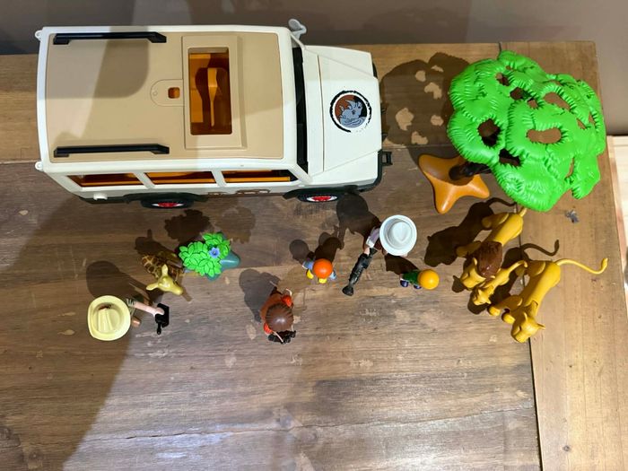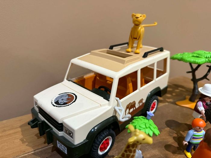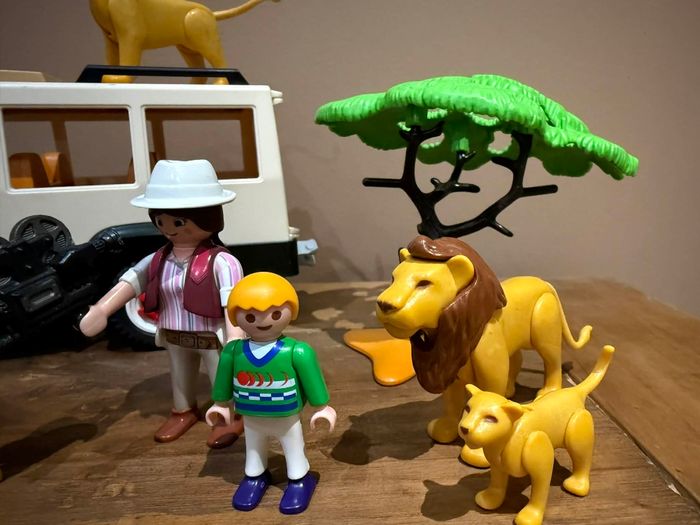 Playmobil Wild Life 6798 Aventuriers avec 4x4 et couple de lions Très bon état Set modifié À vendre ce qui se trouve sur les photos Manque quelques accessoires sur le 4x4