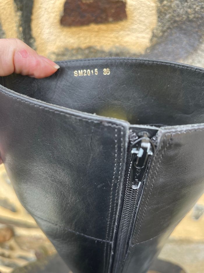 Bottes en cuir noir Pointure 36 SAN MARINA En bon état légèrement abîmer à l’arrière du talon (voir photos) possible d’avoir d’autre photo. Prix neuve 139,95€