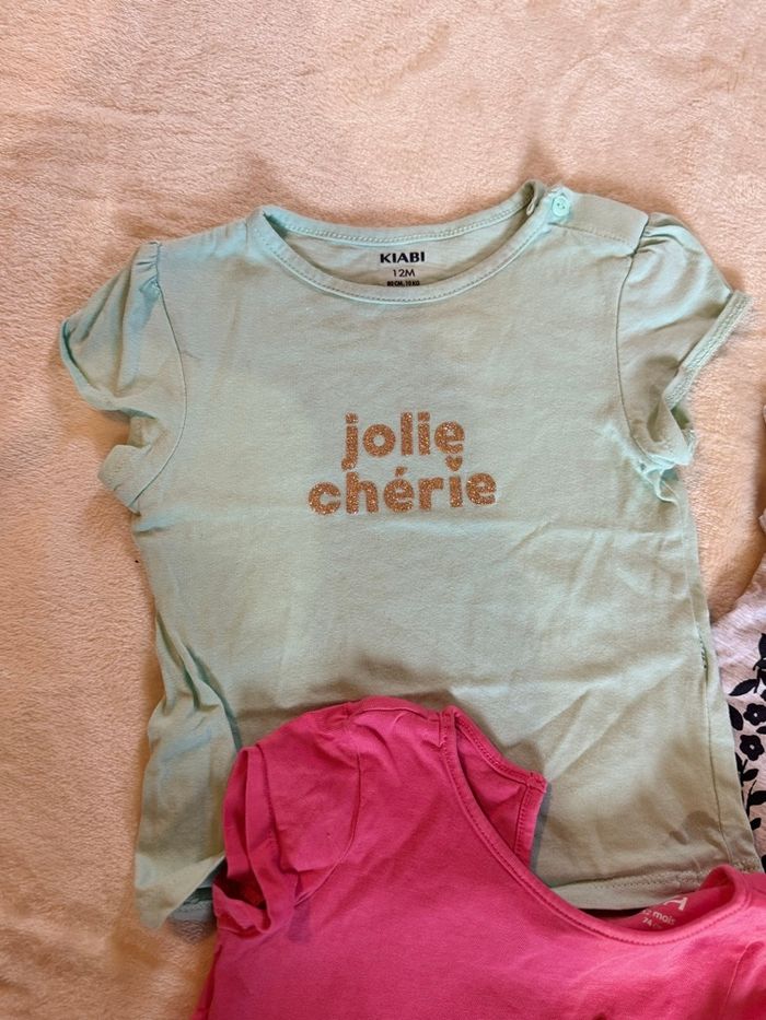 Lot de 4 t shirt en taille 12 mois 🌷 En très bon état sauf 1 qui a une petite tache (voir photo) 🌷 De la marque Kiabi , Primark et La Halle. Envoi rapide et soigné !