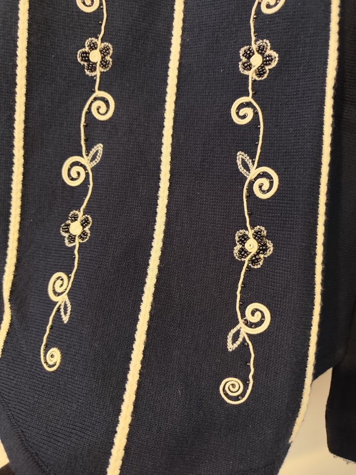 Pull vintage bleu marine et beige à fleurs taille 40 - photo numéro 2