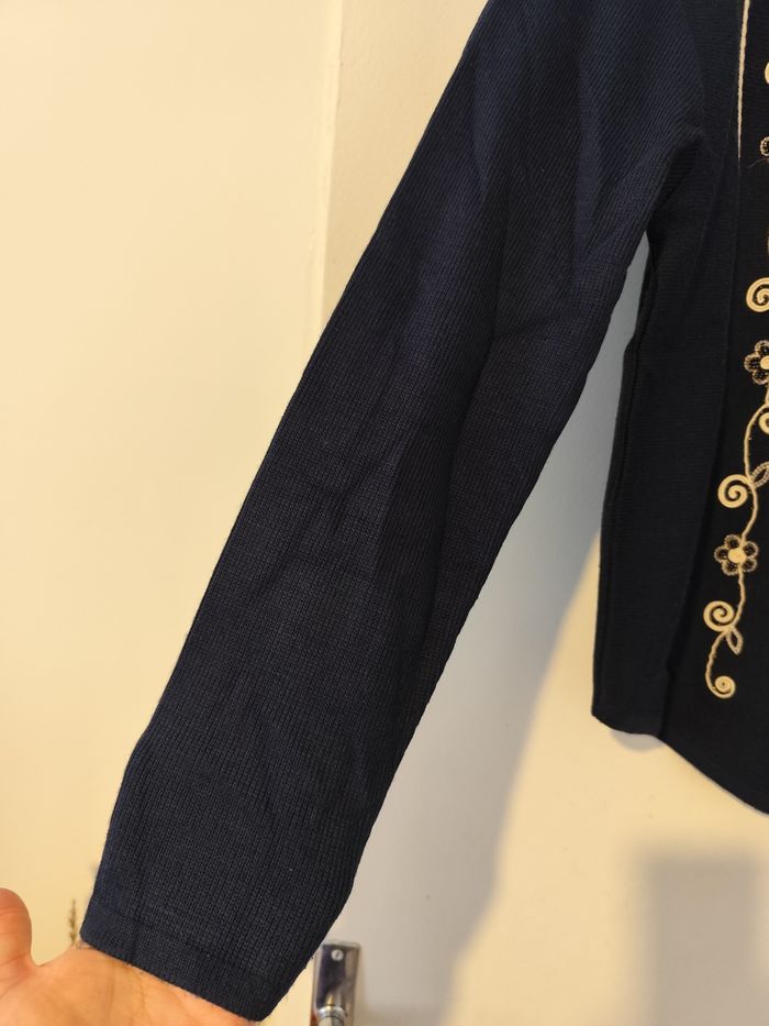 Pull vintage bleu marine et beige à fleurs taille 40 - photo numéro 6