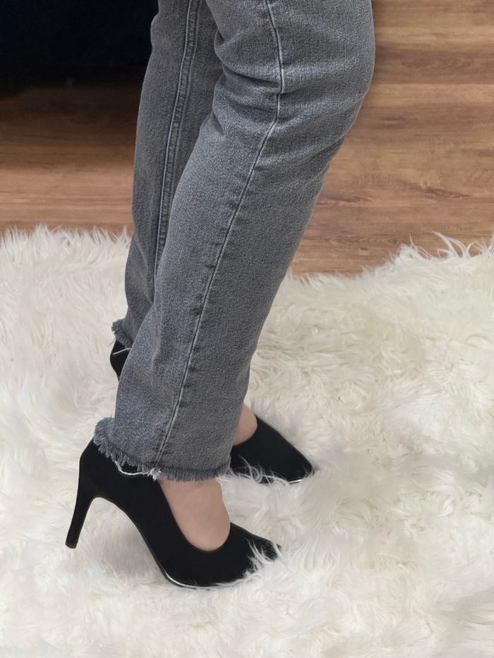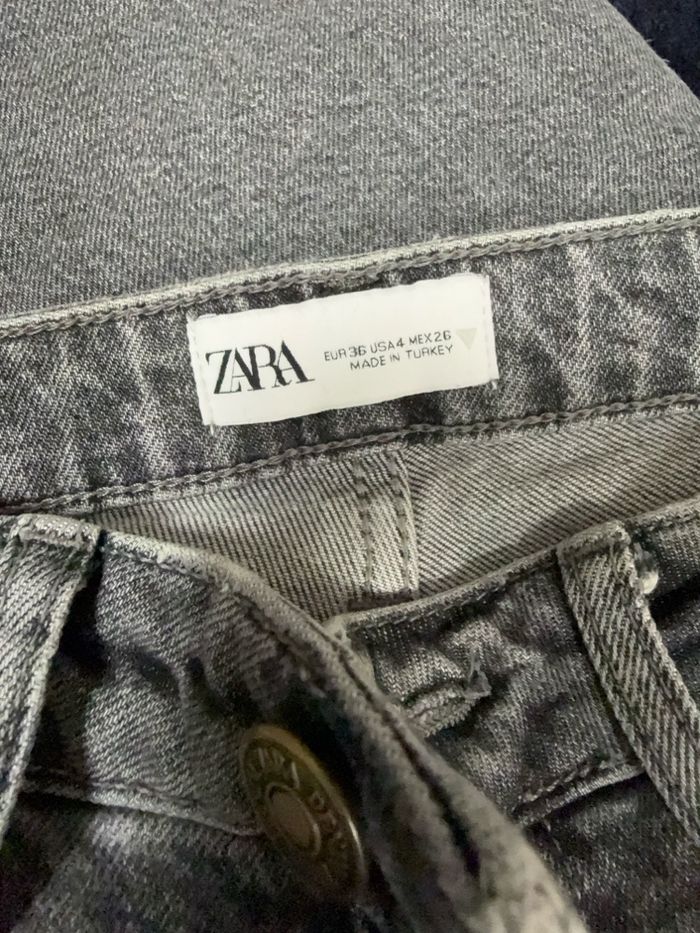 Jean gris Zara taille 36 - Coupe ajustée, bas effiloché - photo numéro 3