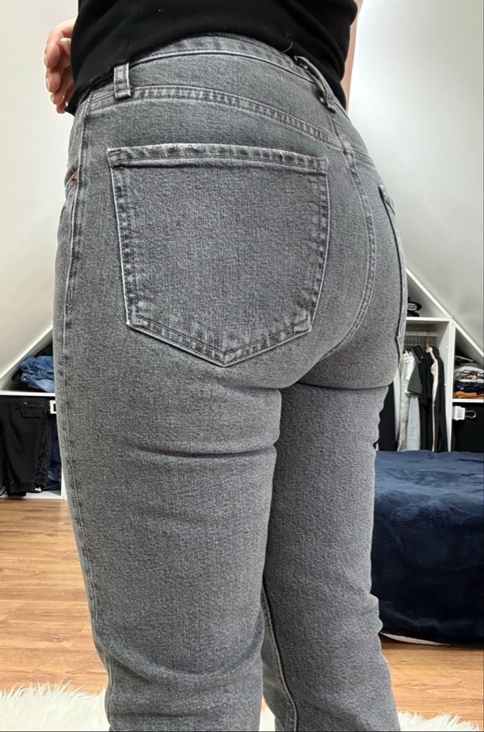 Jean gris Zara taille 36 - Coupe ajustée, bas effiloché - photo numéro 4